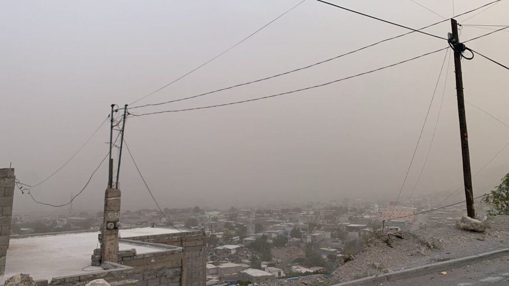 La tormenta de arena se debe al choque de corrientes de aire que arrastran polvo y tierra suelta, situación agravada por la prolongada ausencia de lluvias en la región.