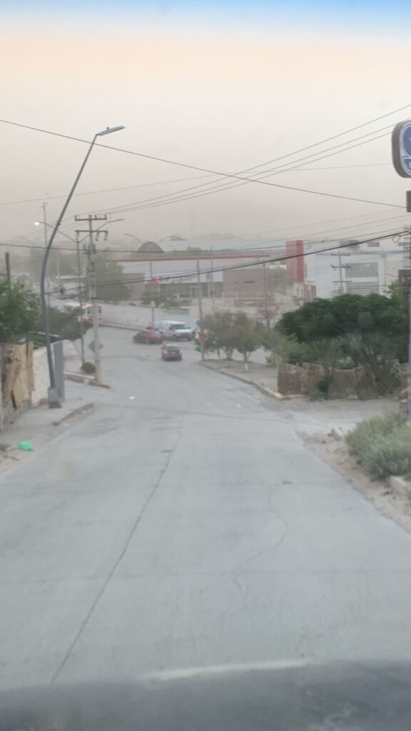 Este fenómeno, originado en El Paso, Texas, se desplaza en dirección hacia el municipio de Ahumada, generando condiciones de baja visibilidad, ráfagas de viento y posibles afectaciones en las principales vías de comunicación.