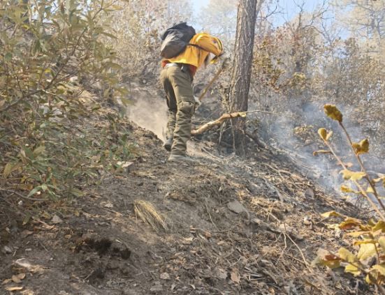 Actualmente, se encuentran en combate 107 brigadistas, quienes enfrentan las difíciles condiciones del terreno para proteger bosques, recursos naturales y comunidades.