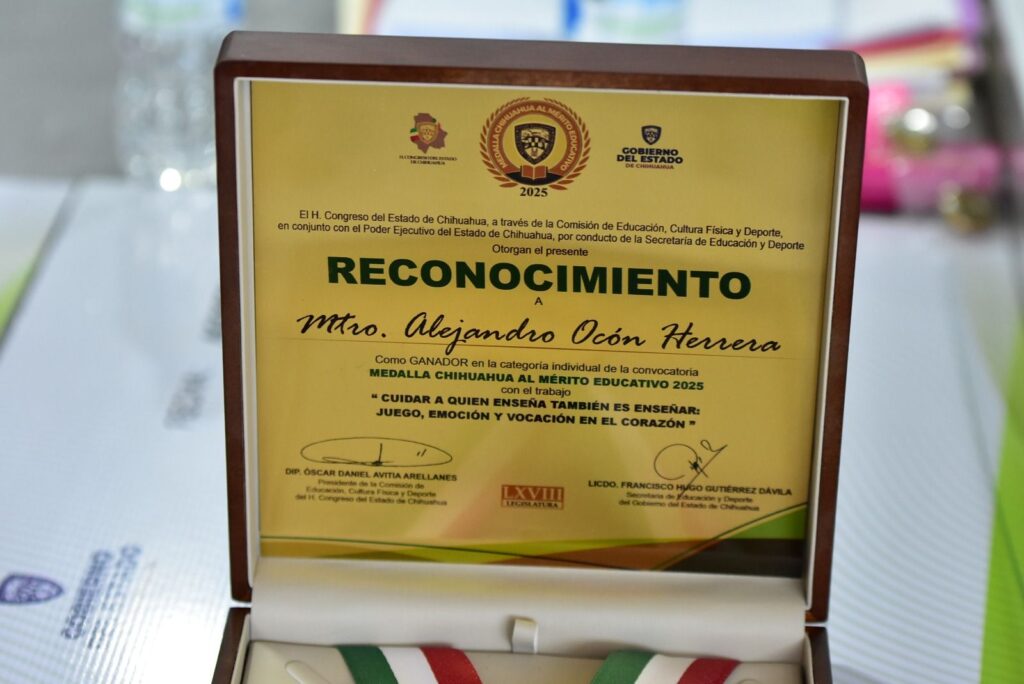 Cabe destacar que, al finalizar el acto solemne, fueron entregados los reconocimientos a las personas que participaron en la Medalla Chihuahua al Mérito Educativo 2025.
