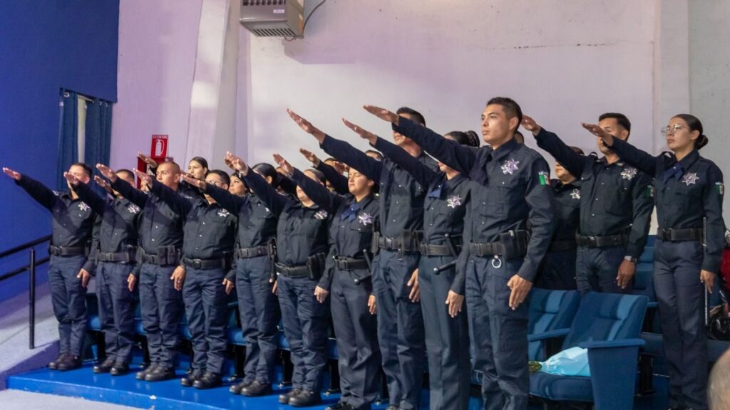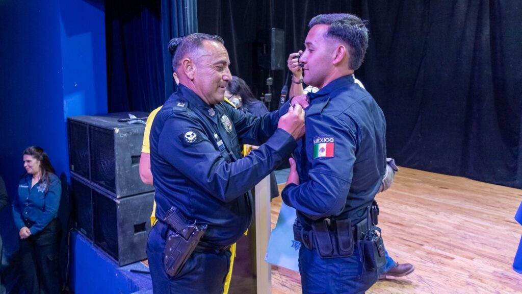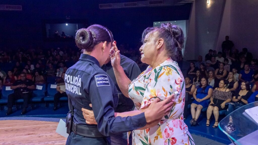 Como parte de la ceremonia, cada uno de los nuevos policías recibió su certificado de manos de las autoridades presentes, mientras que la insignia les fue colocada por sus propias familias, símbolo del compromiso de proteger y servir no solo a la sociedad, sino también a sus seres queridos.