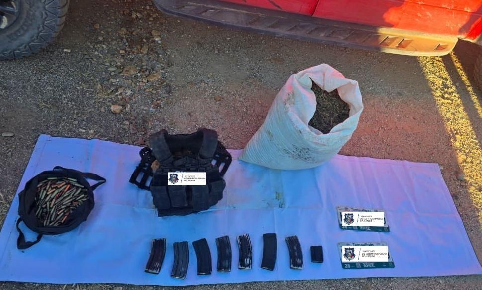 En el lugar se localizó una camioneta Ford Raptor modelo 2013 color rojo, equipada con blindaje de alto nivel y adaptaciones artesanales, además de ciento ochenta cartuchos útiles calibre 7.62×39 milímetros, doscientos cartuchos calibre 5.56×45 milímetros, siete cargadores con capacidad de treinta cartuchos, un cargador metálico de diez cartuchos y un chaleco portaplacas con placas balísticas.